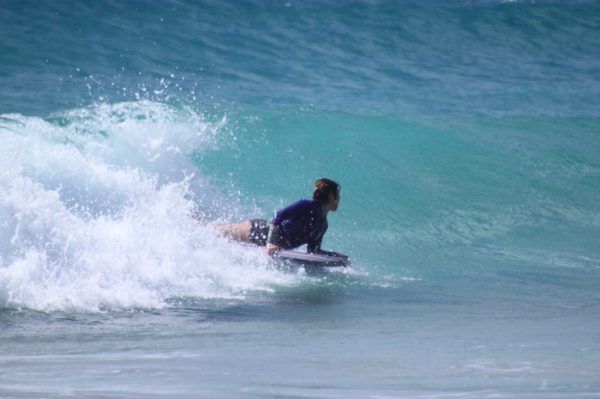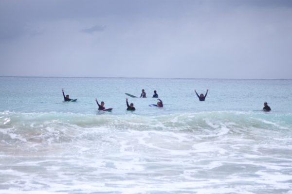 午後はホテル前のショアブレイクで砂まみれになりながら波乗りして~